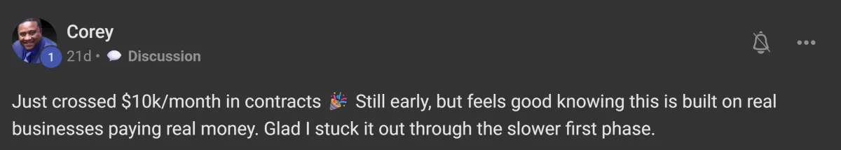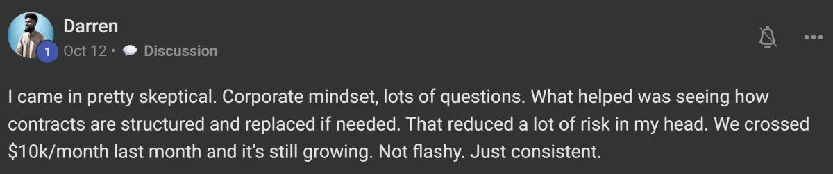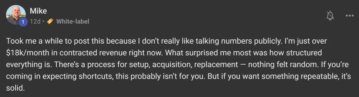 Validation First: We don't transfer ownership until you have a minimum of $10K in monthly contracted value secured.